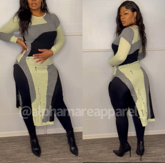 ALLY Long Sleeve Color Block Distressed Sweater Dress